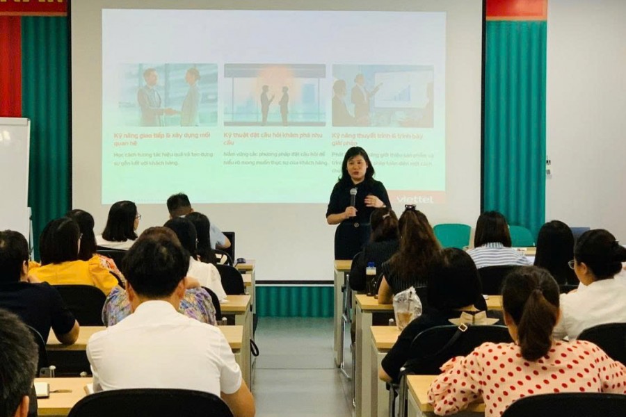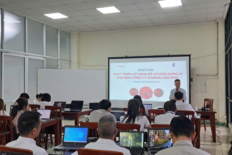 Học viện Viettel phối hợp Xi Măng Cẩm Phả tổ chức khóa “Phát triển kỹ năng số & ứng dụng AI” áp dụng mô hình 40:20:40 với 38 học viên tham dự; điểm hài lòng 4,7/5
